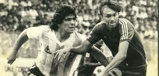 | Maradona y Carrero en un pasaje de aquel partido en 1985 |